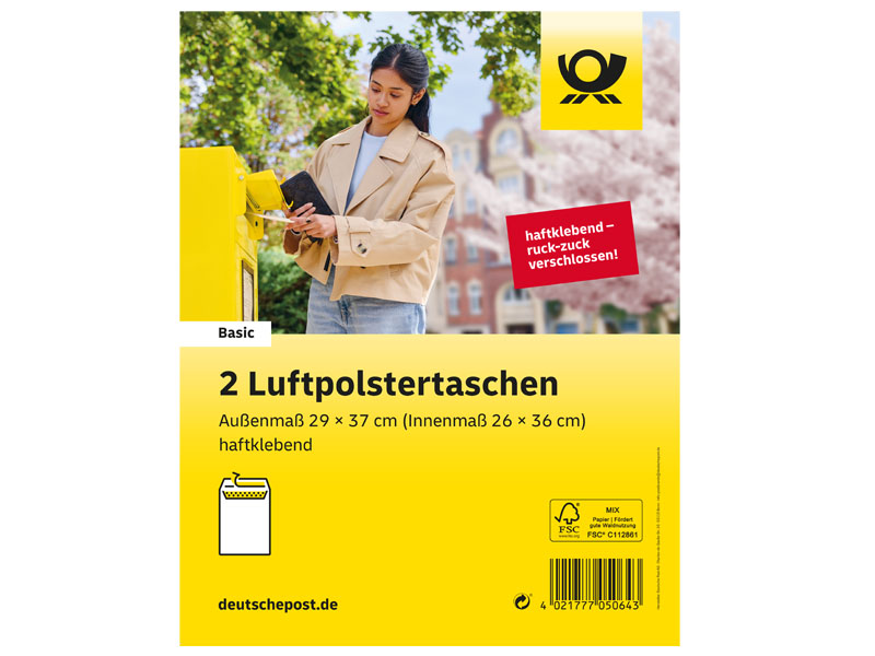 Luftpolstertaschen schützen Ihre Sendung vor Druck und Stößen. Faltentaschen sind für den Versand ganzer Aktenordner geeignet. Zur Familie der Versandtaschen gehören außerdem Kuvertierumschläge für wichtige Korrespondenz sowie spezielle CD-Versandtaschen.