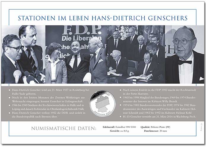 - Silber-Medaille "zur Erinnerung an Bundesminister a.D. Hans-Dietrich Genscher"
