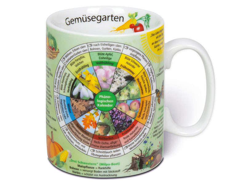 Gartenfreunde aufgepasst: Der farbenfrohe Becher enthält viele spannende und wissenswerte Fakten rund ums Gemüsebeet. Spülmaschinenfest.